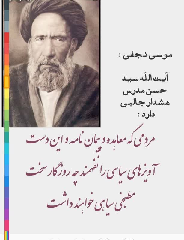درس دیروز برای سیاست امروز آذر ۲۴, ۱۴۰۳آذر ۱۰, ۱۴۰۳ از mousanajafi درس دیروز برای سیاست امروز ✅پیش بینی شهید مدرس در مورد عدم فهم قرادادها و معاهدات و عواقب سوء آن برای ملتی که این موارد را نفهمند ۰ درسی که امروز با همه وجود در مورد فرجام برجام به اثبات رسید ۰ انتشار در: